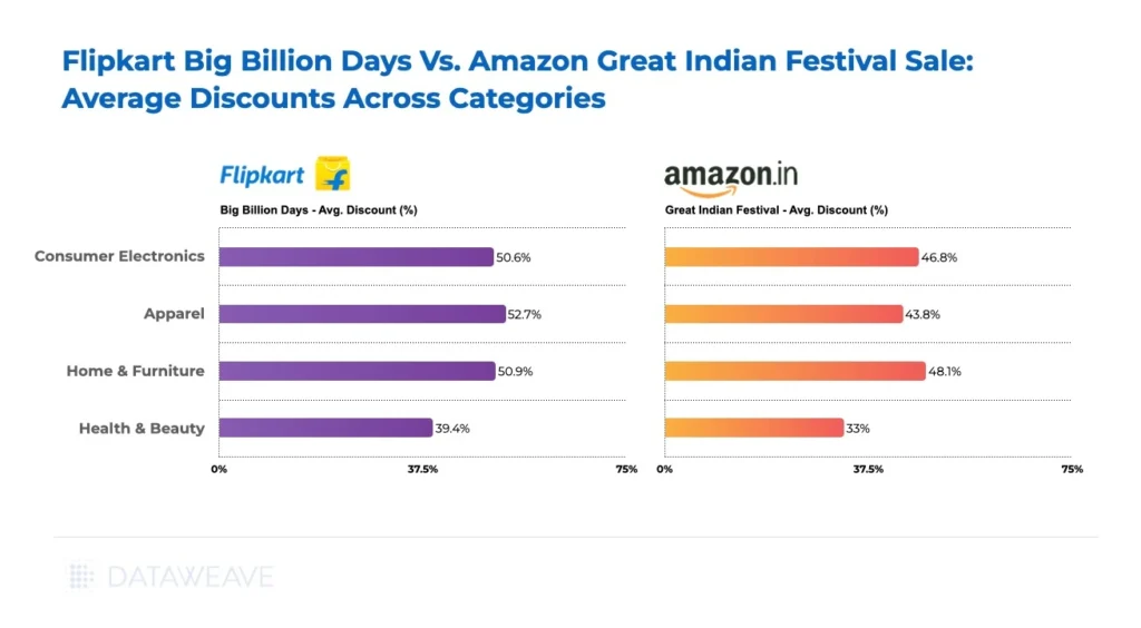 - Smartphones & Appliances: Flipkart dominates mid-range smartphones and budget appliances.