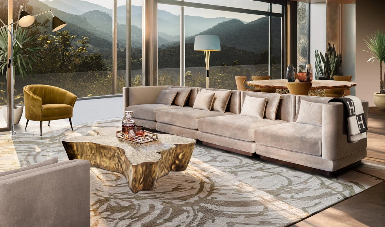 - Pick one hero piece — a curved sofa or table — and let it define the room.